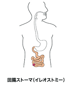 回腸ストーマは、腹部から小腸(回腸)までをつなげるために外科的につくられた開放口です。 造設時は小腸及び大腸(結腸)の一部が切除またはバイパス手術がなされます。