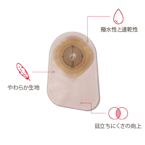 ぴたっと密着し漏れを防ぐための形状(Fit)、ストーマ周囲皮膚の健康の維持をサポートするためのスキンケア成分セラミド配合(Formulation)、そしてハイクオリティーなストーマ袋(Pouch)を。改良された袋の生地は透けにくくプライバシーを確保します。